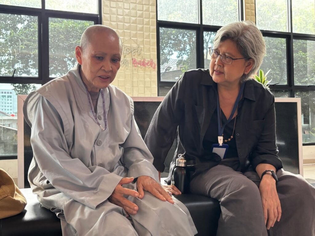 Perempuan yang memiliki nama religius, Suhu Shien, ini tampak mengenakan jubah berwarna abu-abu muda. Kini Ia telah menjadi rohaniawan perempuan Budha (Bikhuni).