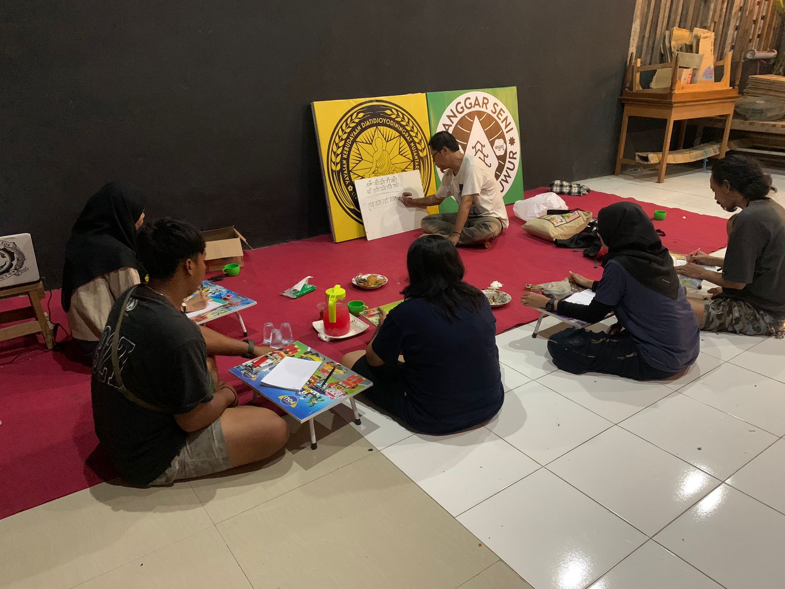 Hal serupa dituturkan Wiji (57), salah satu pegiat seni Omah Dhuwur yang konsisten mengajar kelas penulisan aksara Jawa.