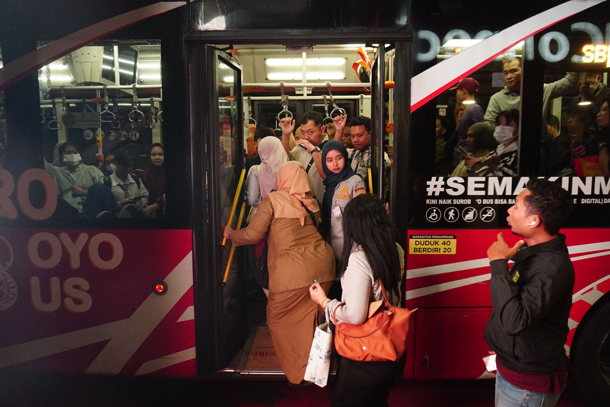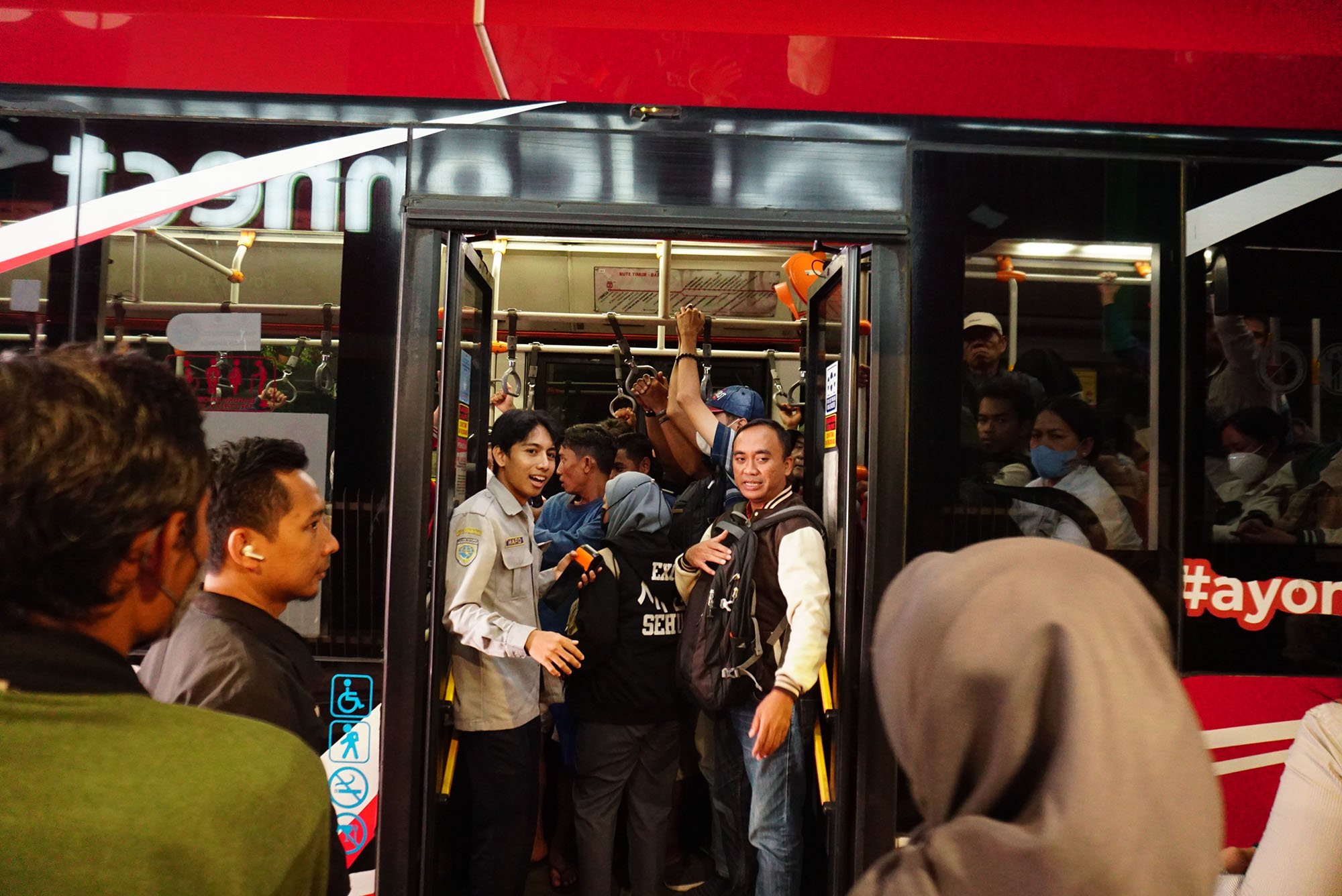 Ini adalah kali pertama Cantika Alta (25) ditolak menumpang bus berkelir merah itu. Sementara Revadhiya (22), tak kaget karena sudah mengalaminya beberapa kali. Alasannya klasik, bus penuh penumpang hingga tak mungkin mengangkut penumpang lagi. Keduanya hanya bisa menghela napas dan sembari memperpanjang rasa sabarnya.